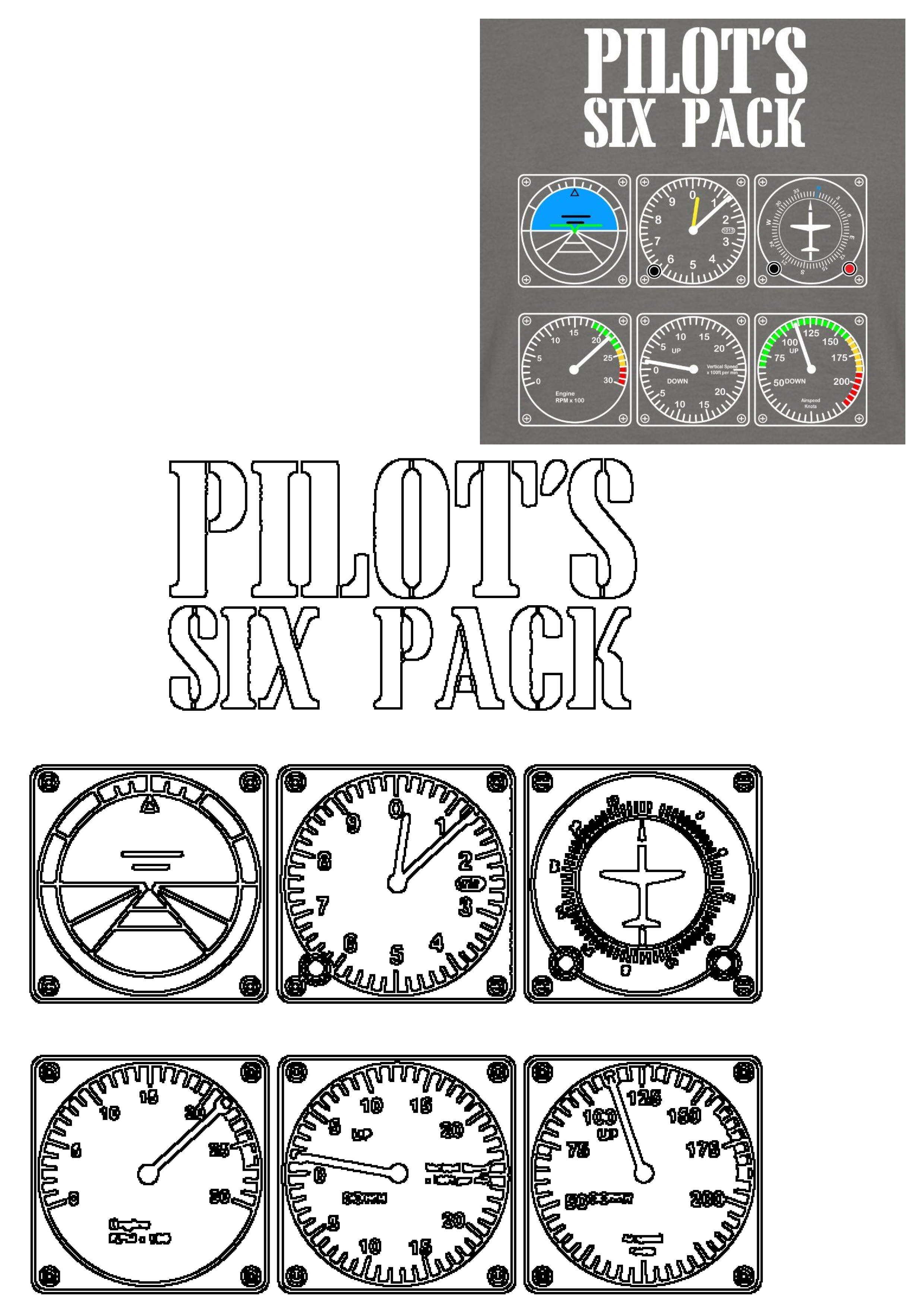 Free printable Pilots Six Pack Aviation Instruments Graphic Design coloring page for kids of all ages. You can print or download this high-quality A4 outline to color at home. Perfect for educational activities and developing creativity.