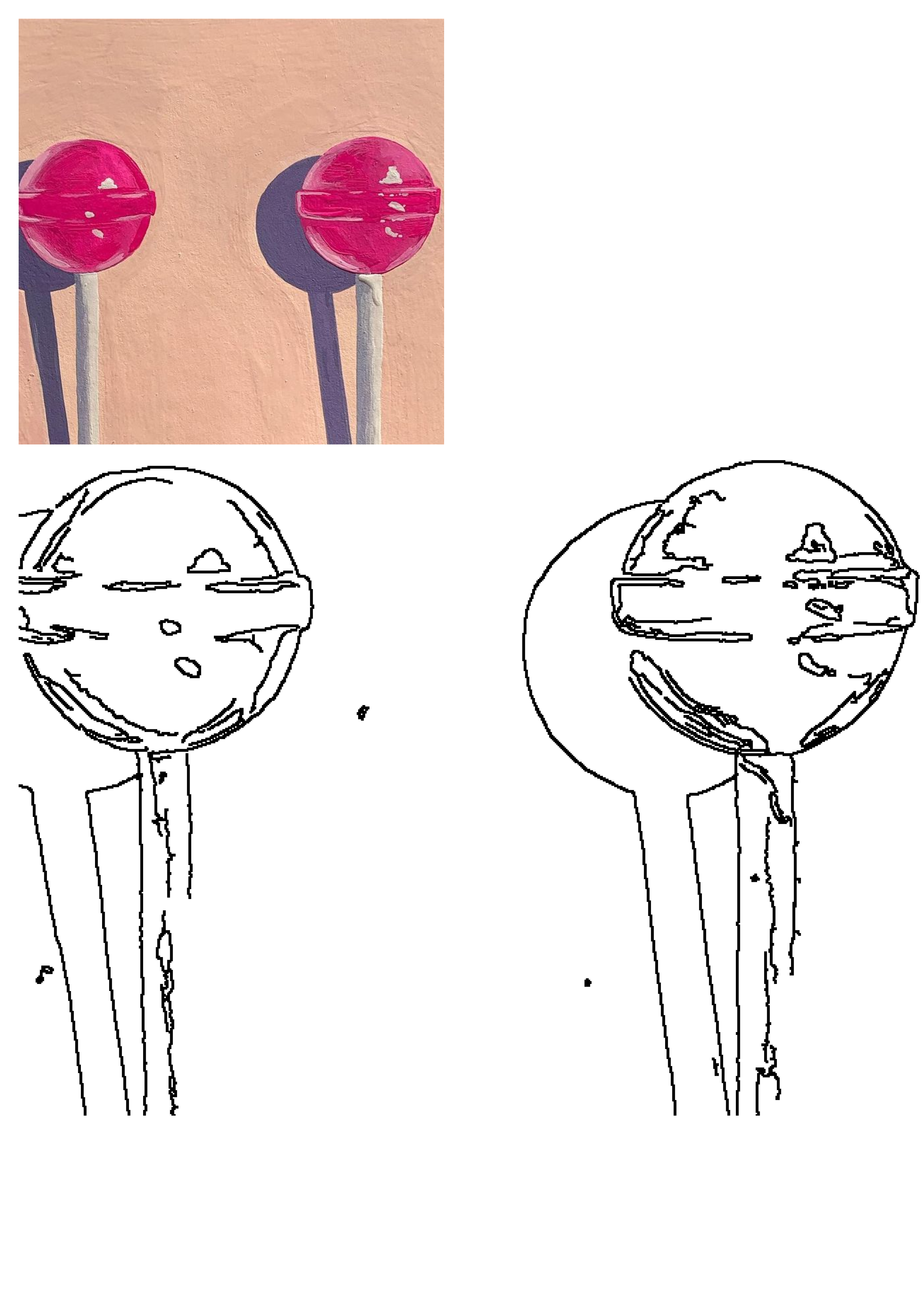 Two Pink Lollipops Standing Against Wall Coloring Page