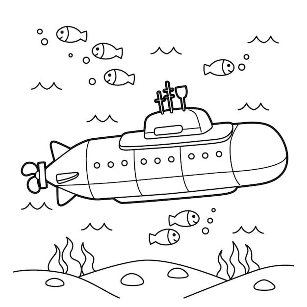 Free printable Submarine Underwater Scene With Fish coloring page for kids of all ages. You can print or download this high-quality A4 outline to color at home. Perfect for educational activities and developing creativity.
